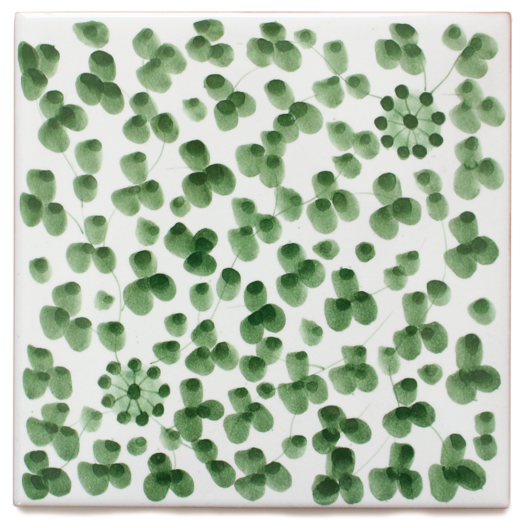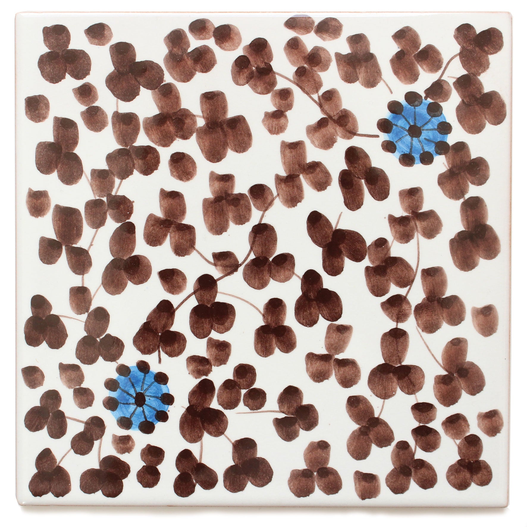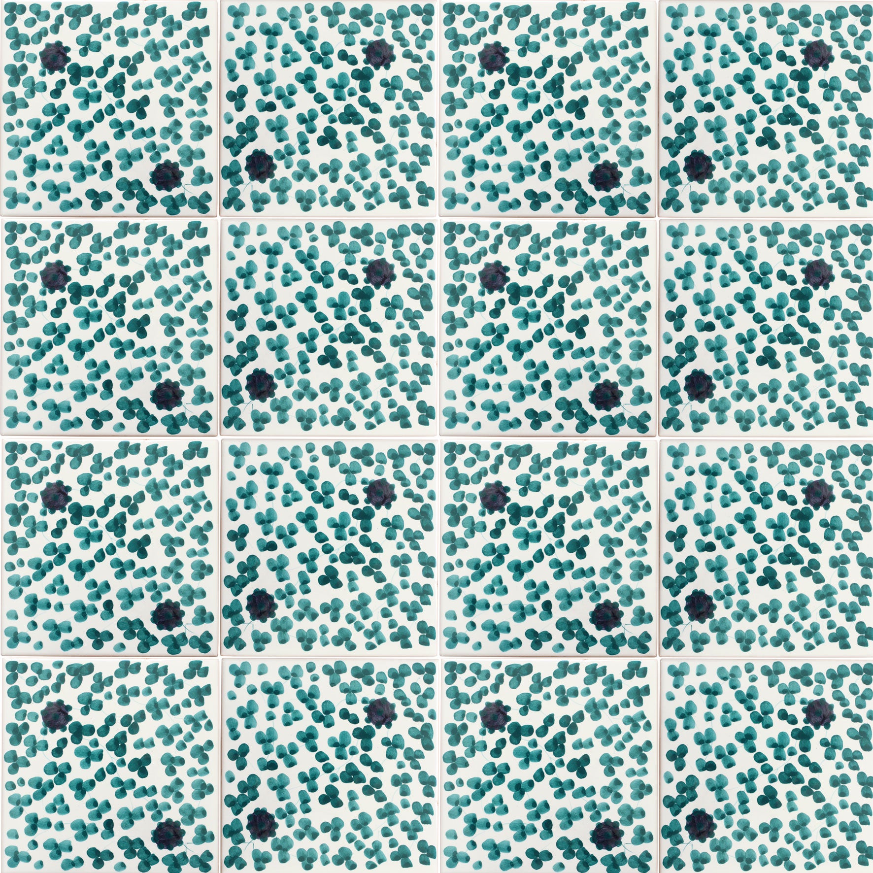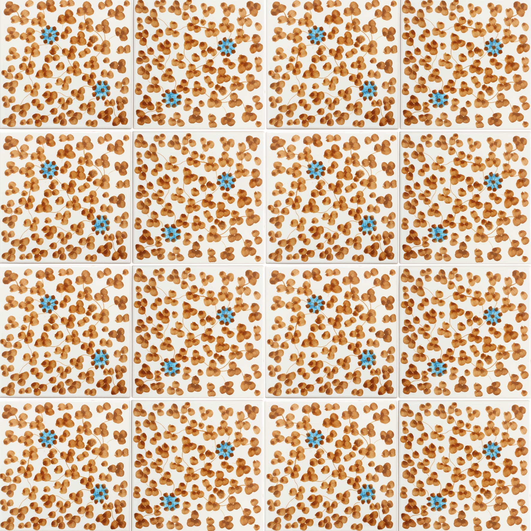 These tiles are inspired by the traditional Arabesque design from Deruta, Italy. Usually featuring birds, leaves and flowers, the design has been simplified to create a more uniform pattern. It features interwoven leaves and flowers in a calligraphy style with beautiful detailed visible brushstrokes.
