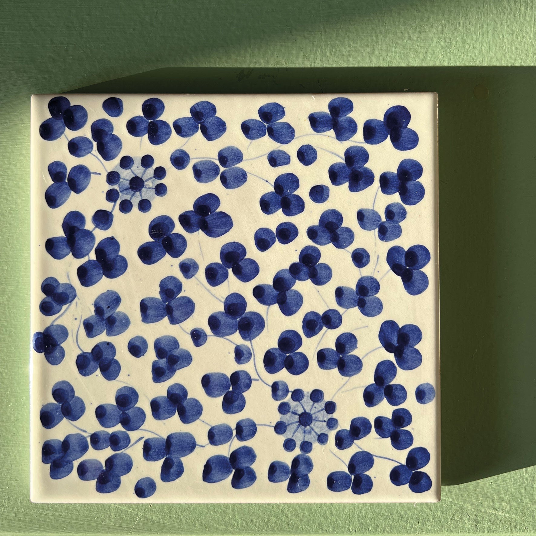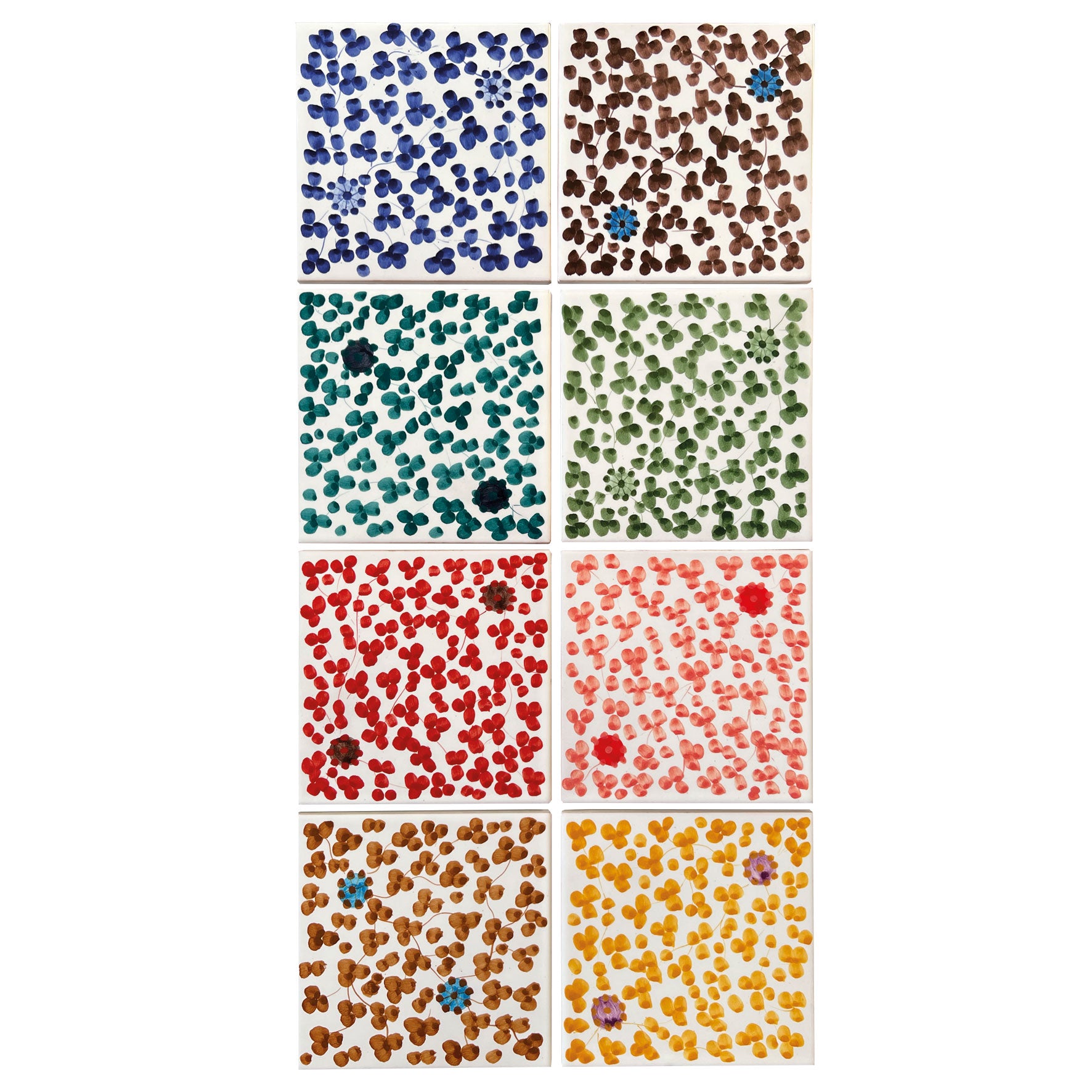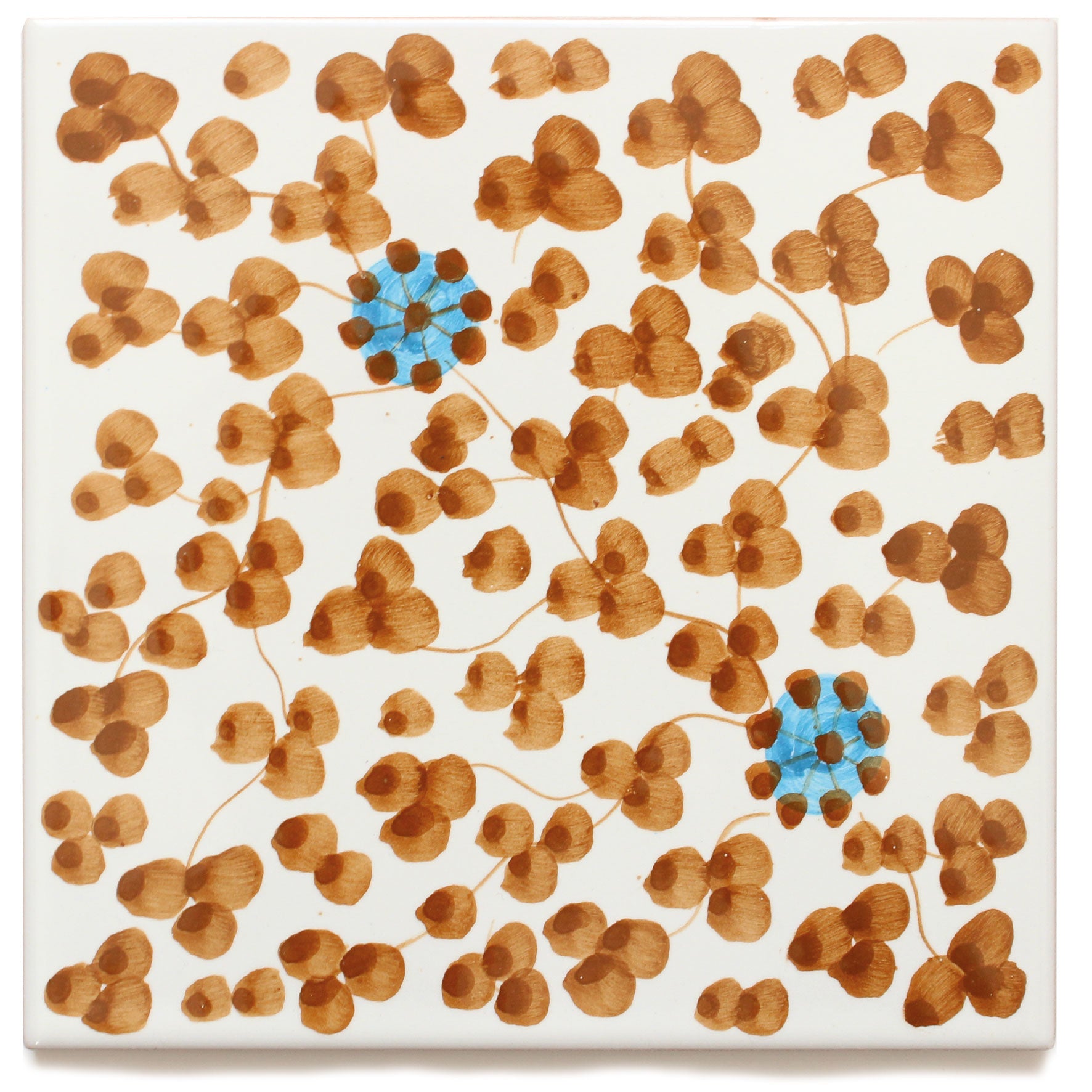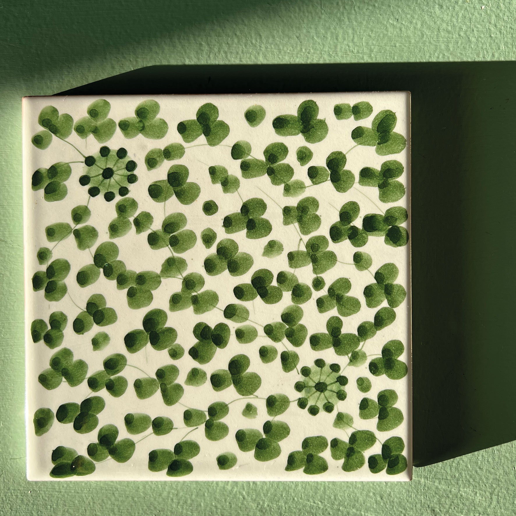 These tiles are inspired by the traditional Arabesque design from Deruta, Italy. Usually featuring birds, leaves and flowers, the design has been simplified to create a more uniform pattern. It features interwoven leaves and flowers in a calligraphy style with beautiful detailed visible brushstrokes.