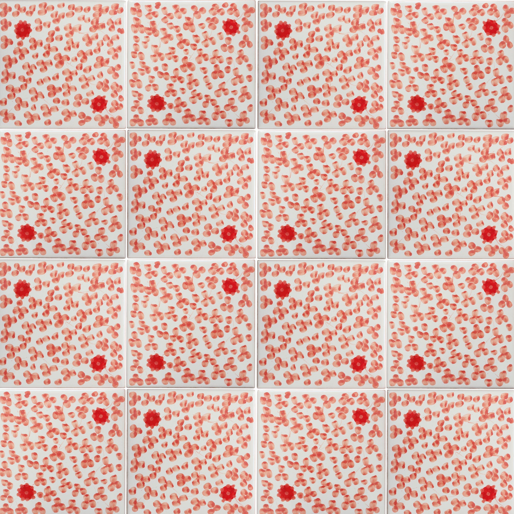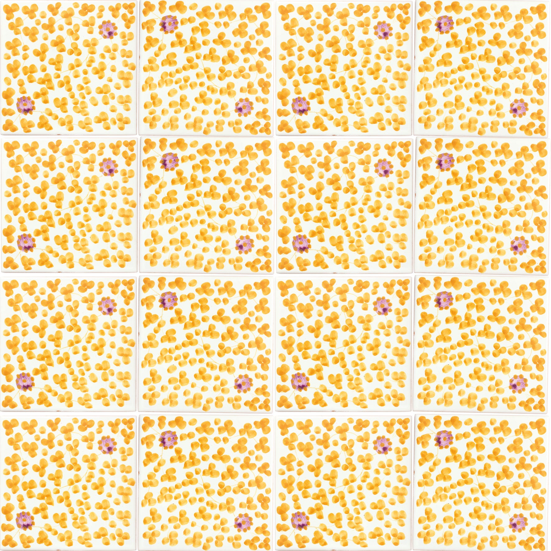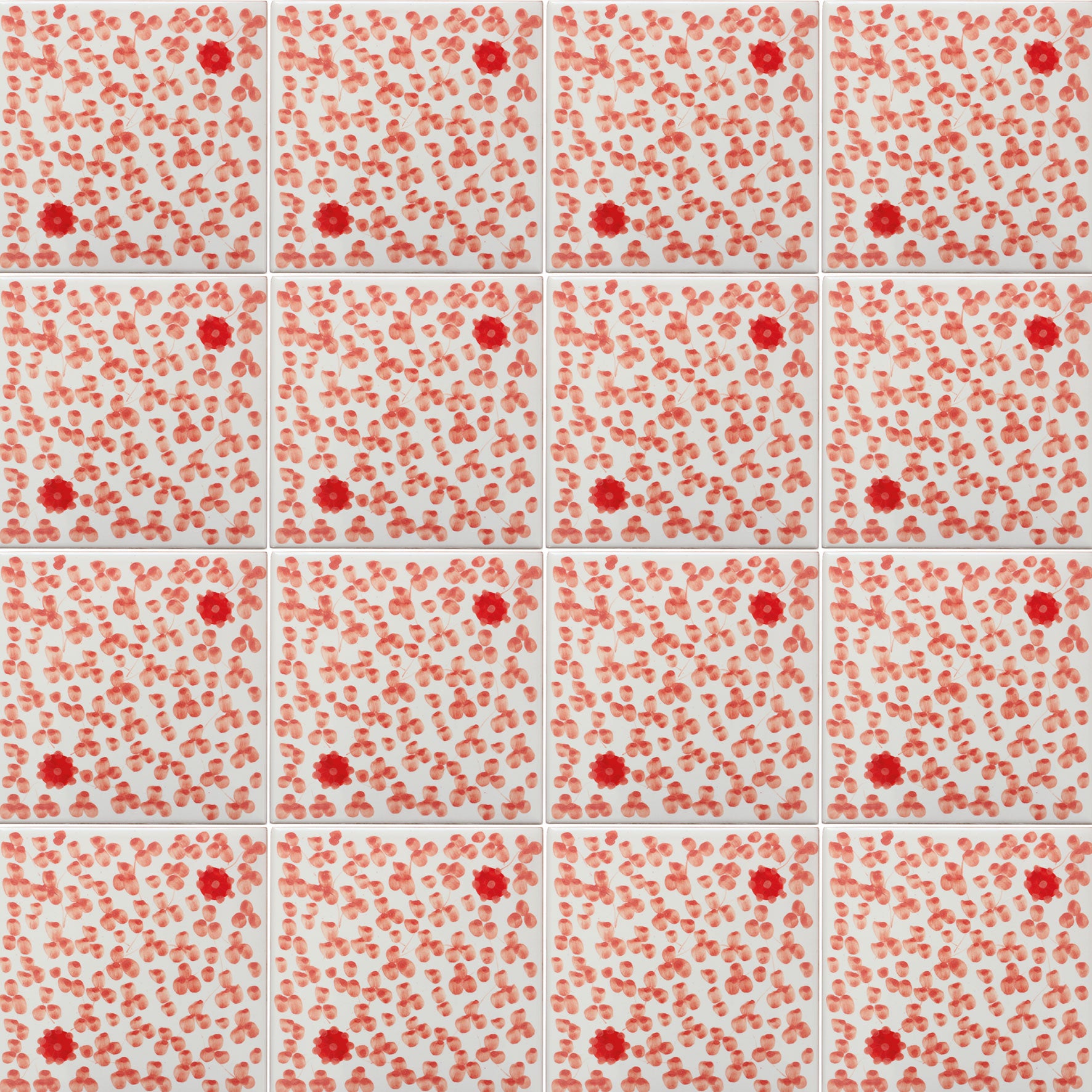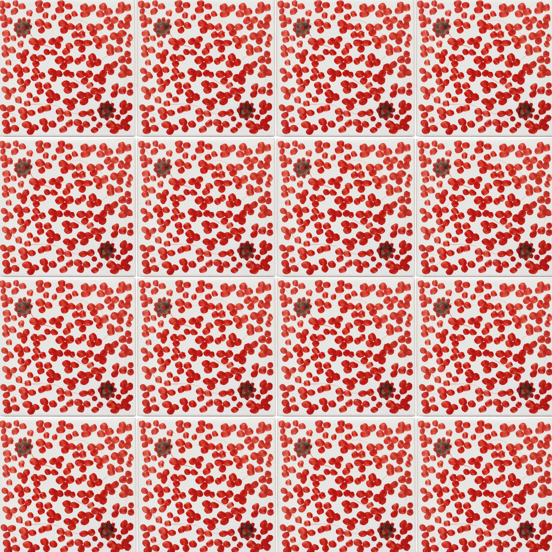 These tiles are inspired by the traditional Arabesque design from Deruta, Italy. Usually featuring birds, leaves and flowers, the design has been simplified to create a more uniform pattern. It features interwoven leaves and flowers in a calligraphy style with beautiful detailed visible brushstrokes.