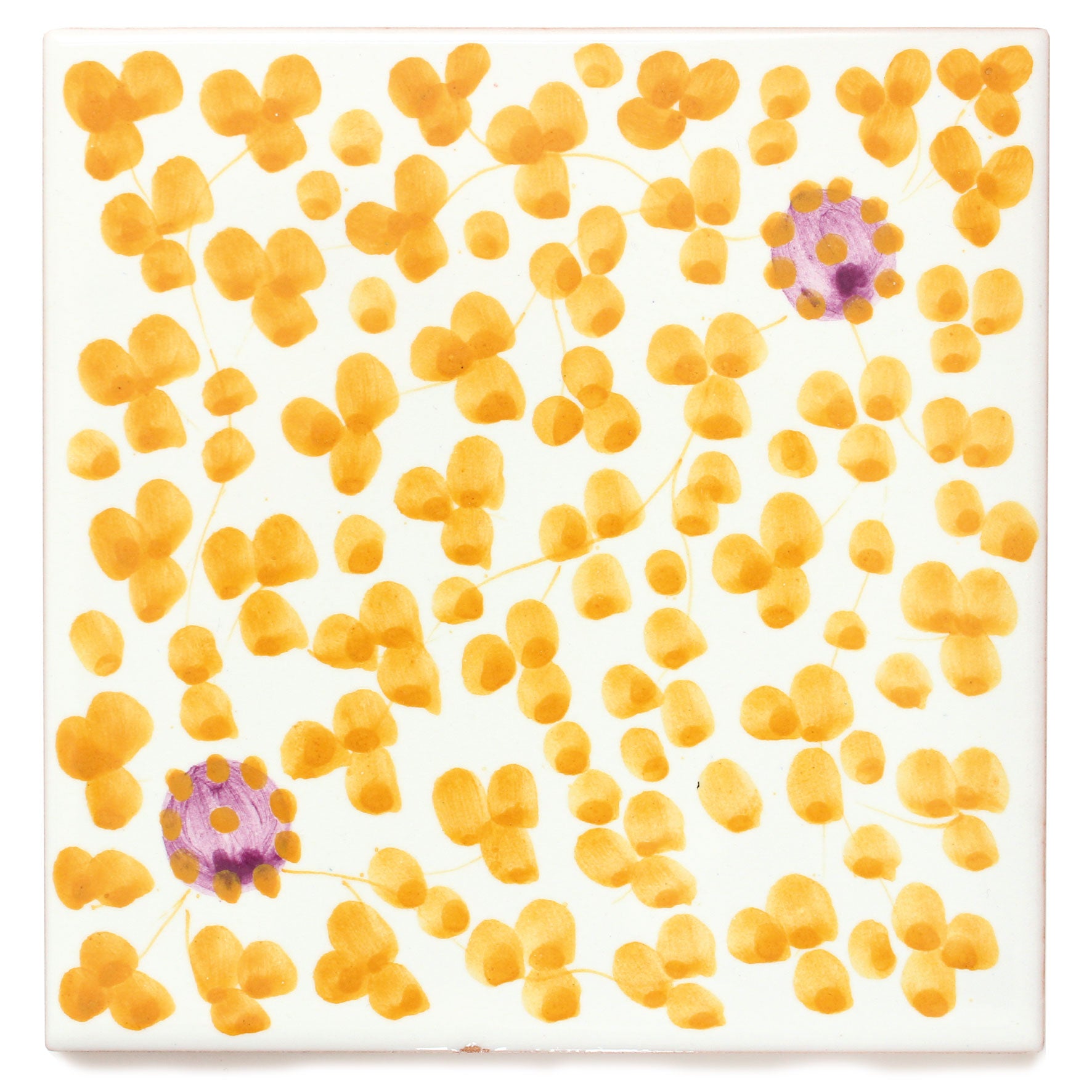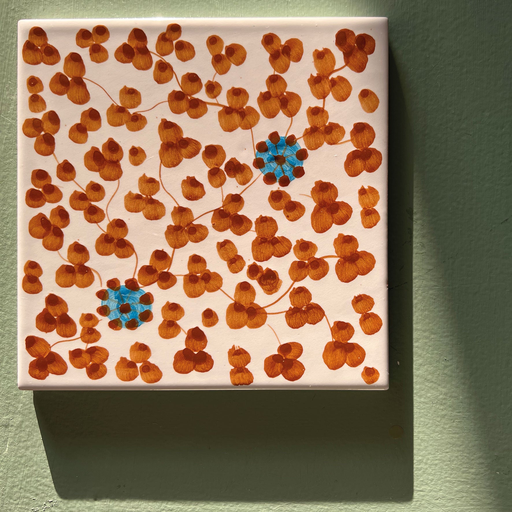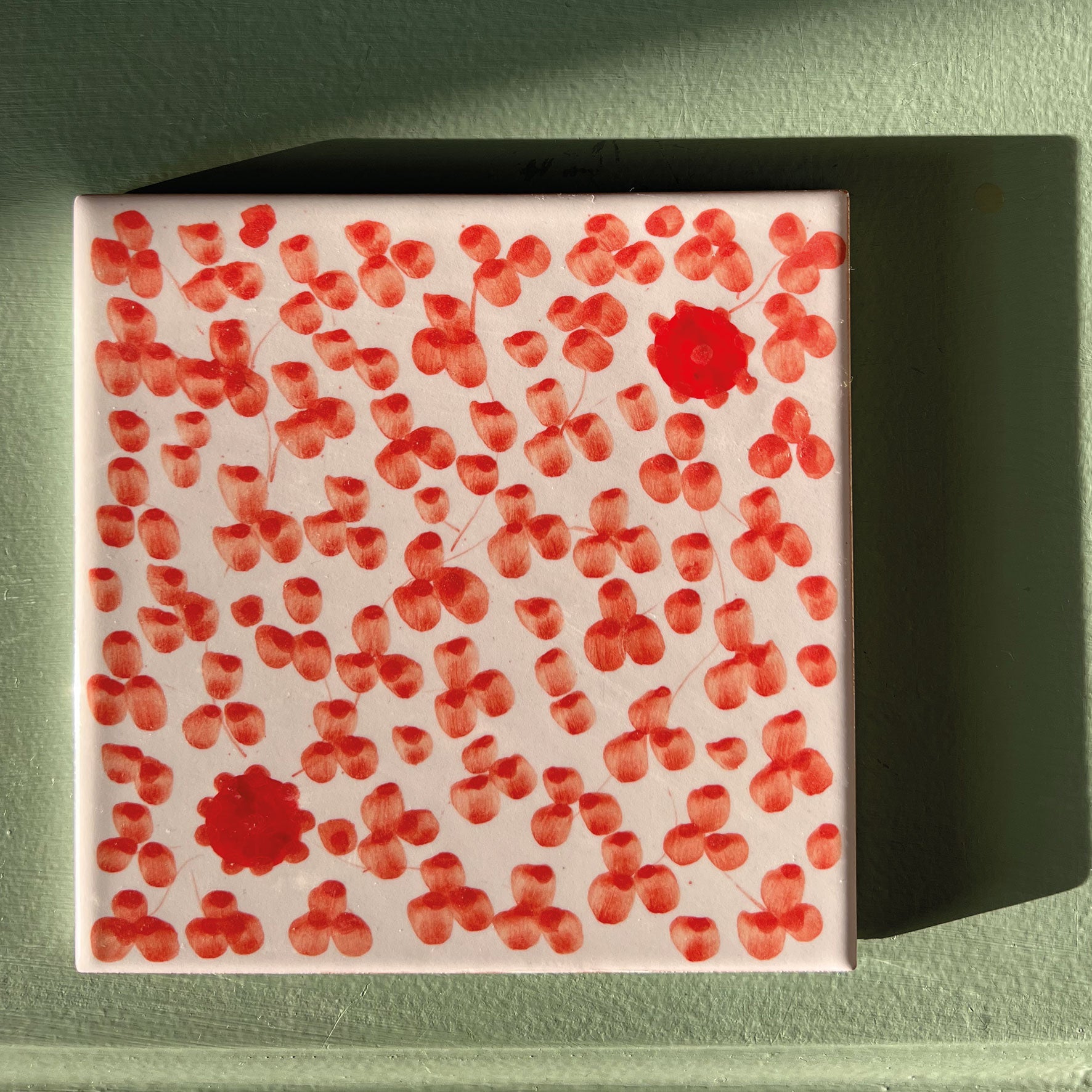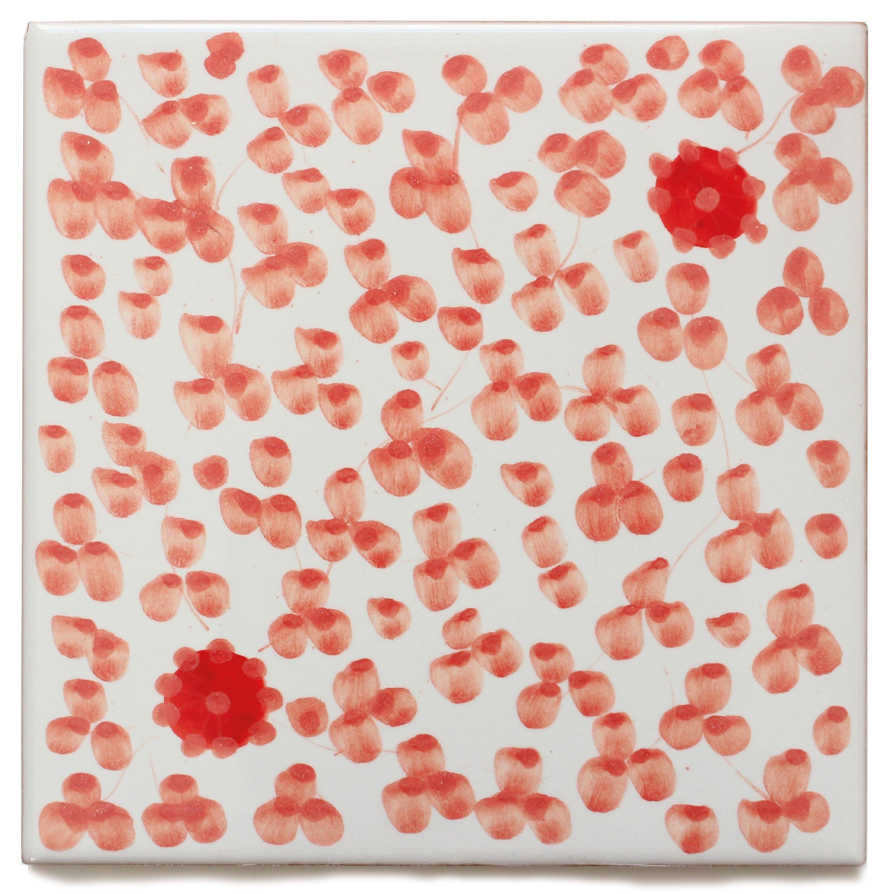 A hand painted floral tile available in a range of colours on a white background glaze.