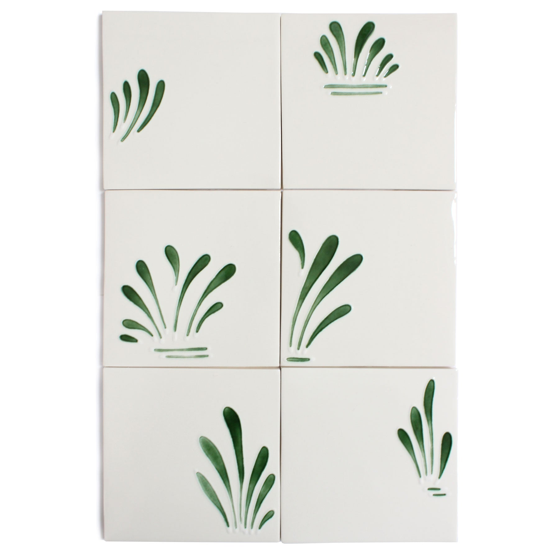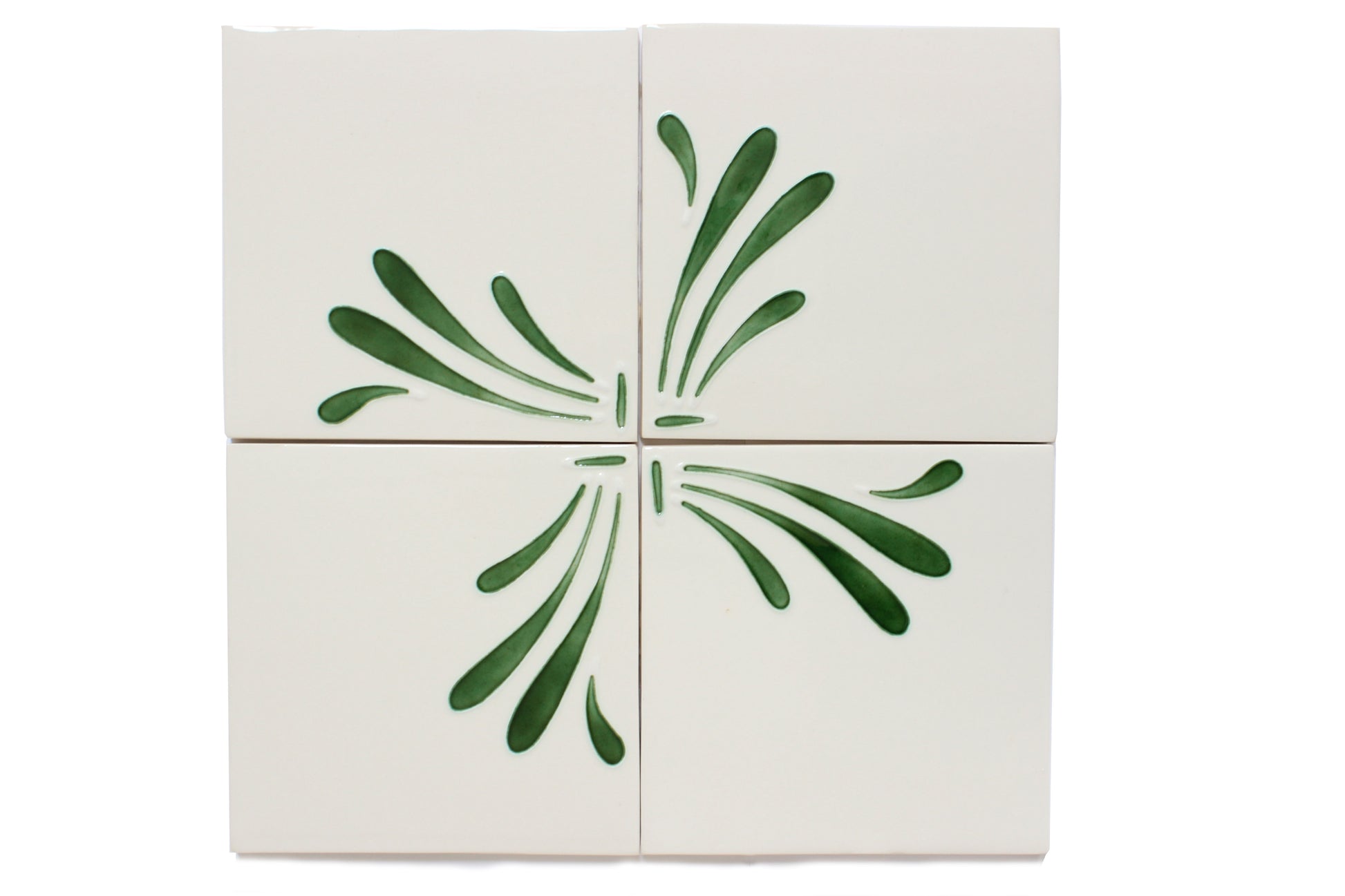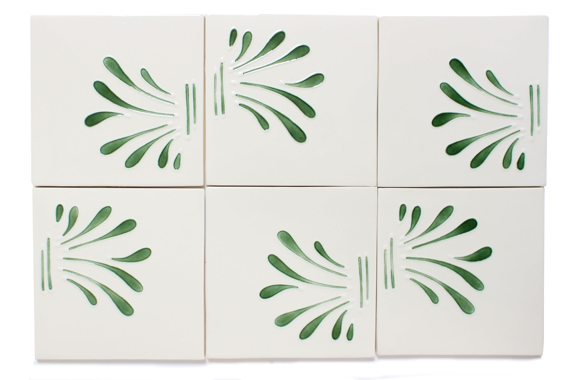 Handmade tiles hand painted with Feild’s spray design in Pine