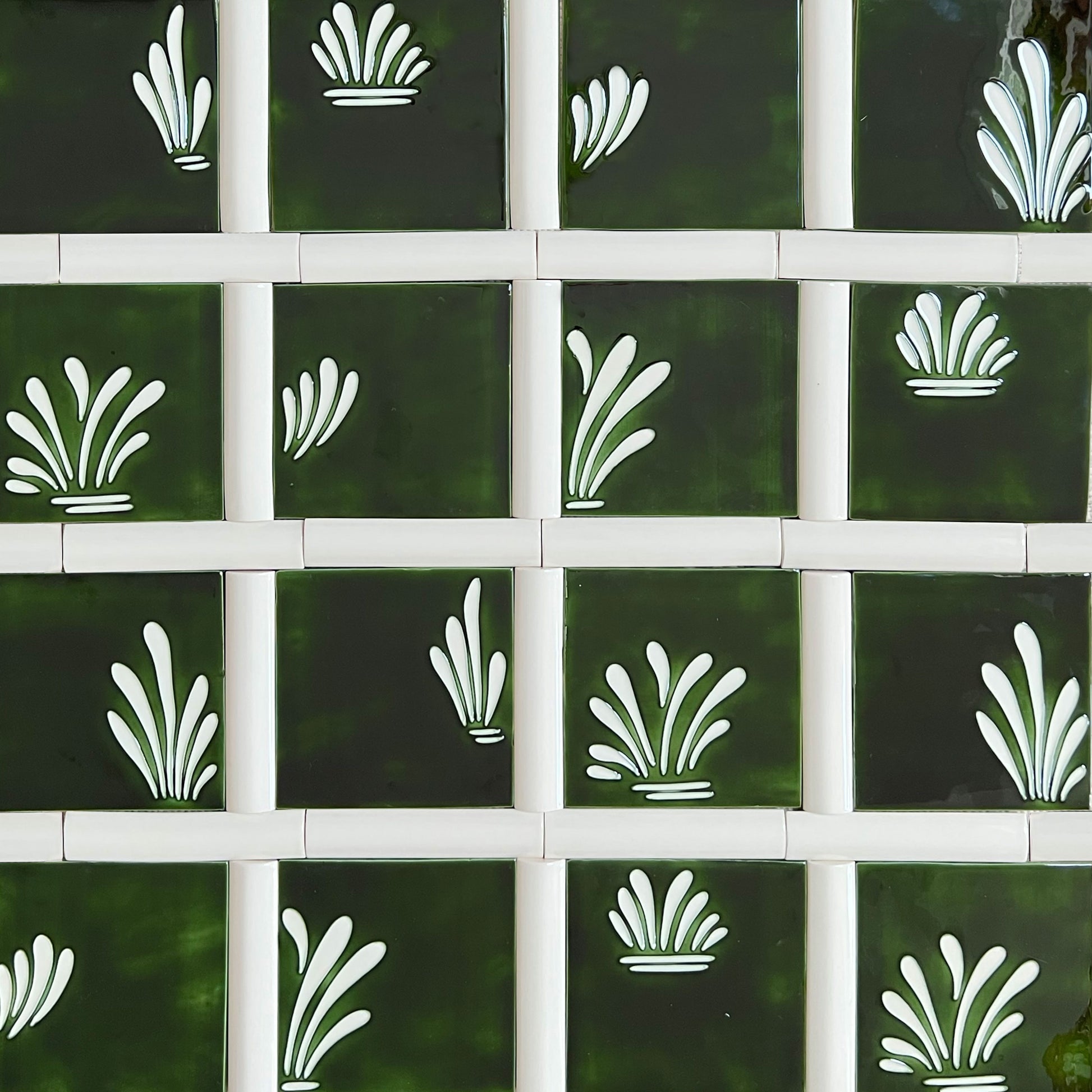 Handmade tiles hand painted with Feild’s spray design in Holly